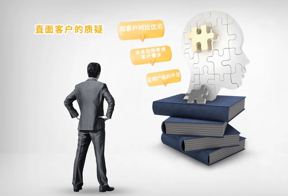 這就需要銷售人員面對質(zhì)疑,不逃避,直面質(zhì)疑,幫客戶對比產(chǎn)品的優(yōu)劣。