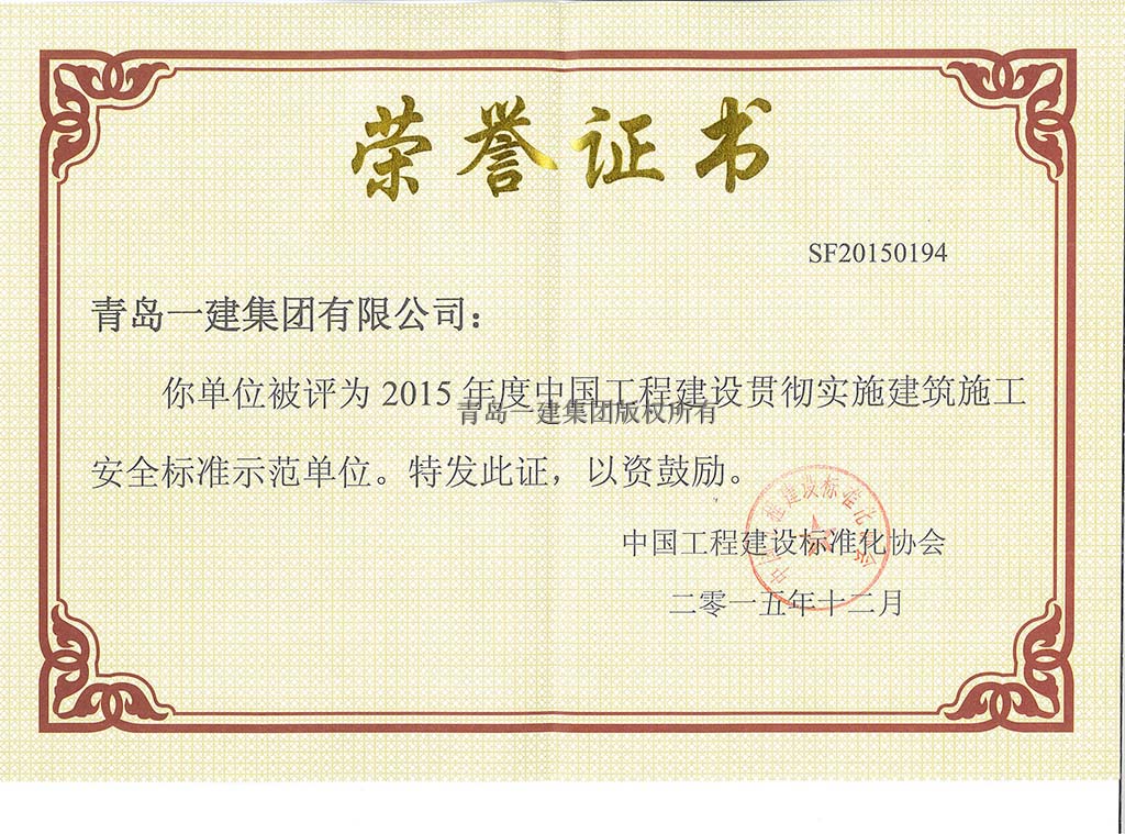 中國工程建設(shè)貫徹實施建筑施工安全標準示范單位