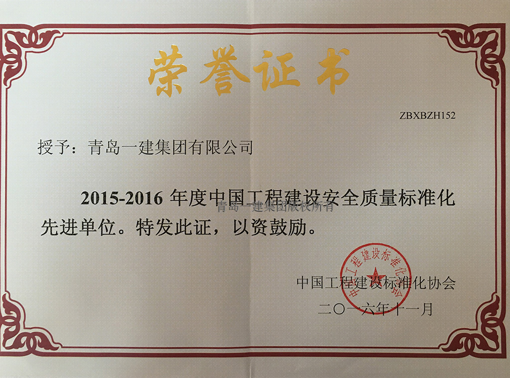 中國工程建設(shè)安全質(zhì)量標準化先進單位