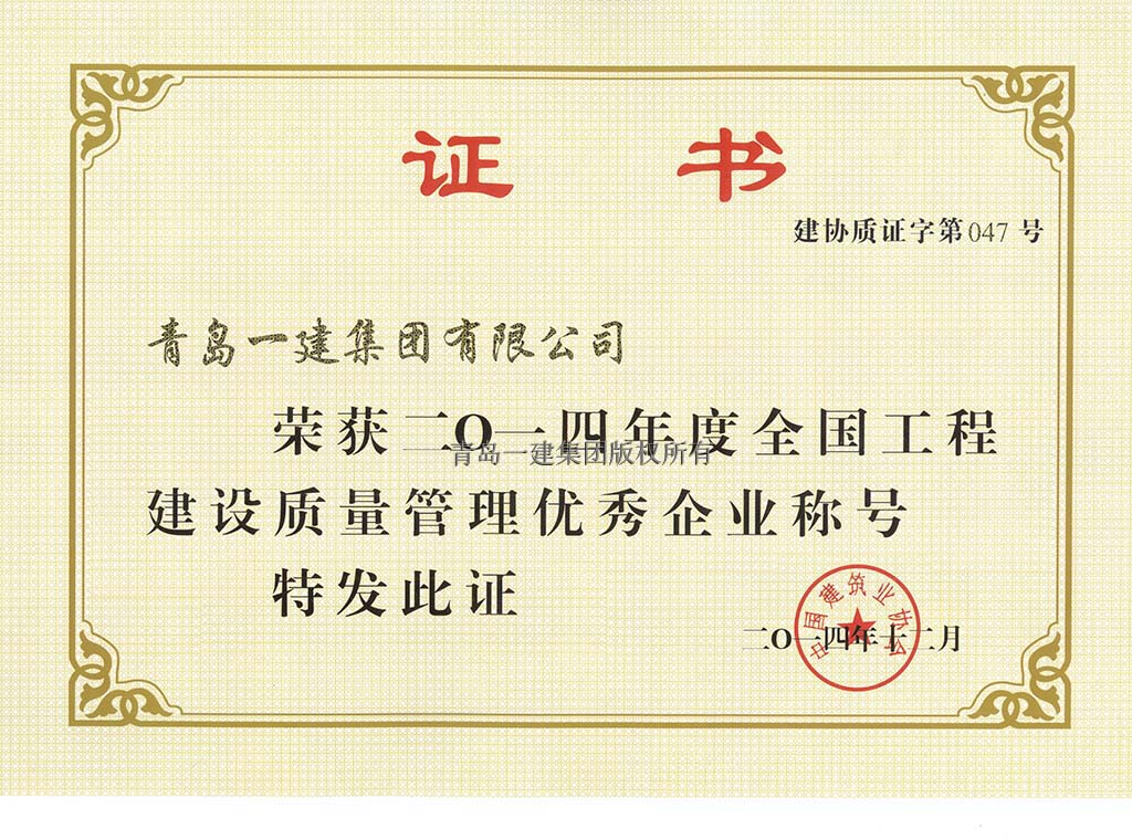 青島市建筑工程質(zhì)量管理先進單位