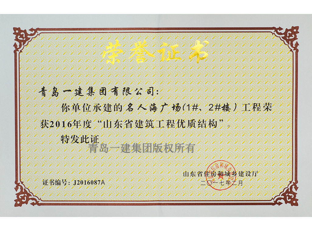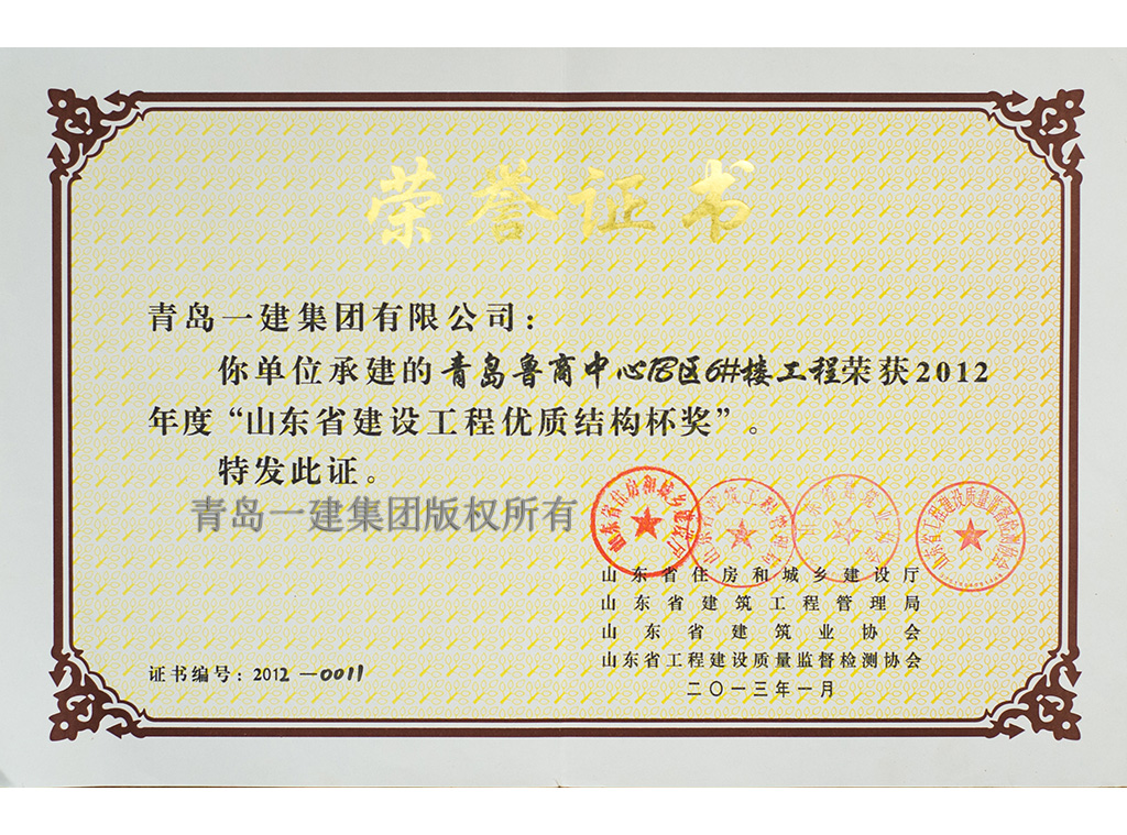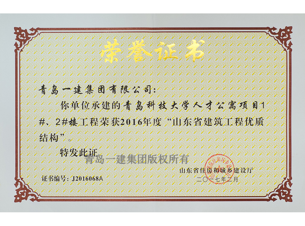 青島市優(yōu)質(zhì)結(jié)構(gòu)工程獎(jiǎng)