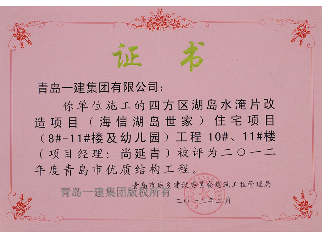 青島市優(yōu)質(zhì)結(jié)構(gòu)工程獎