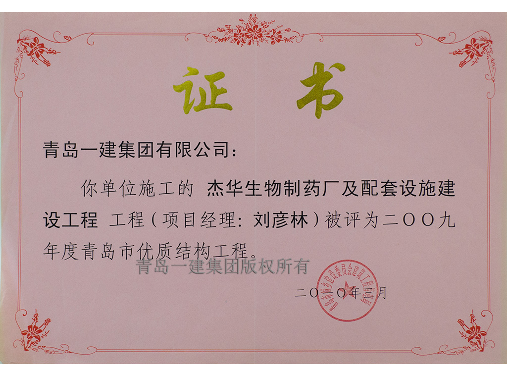 青島市優(yōu)質(zhì)結(jié)構(gòu)工程獎