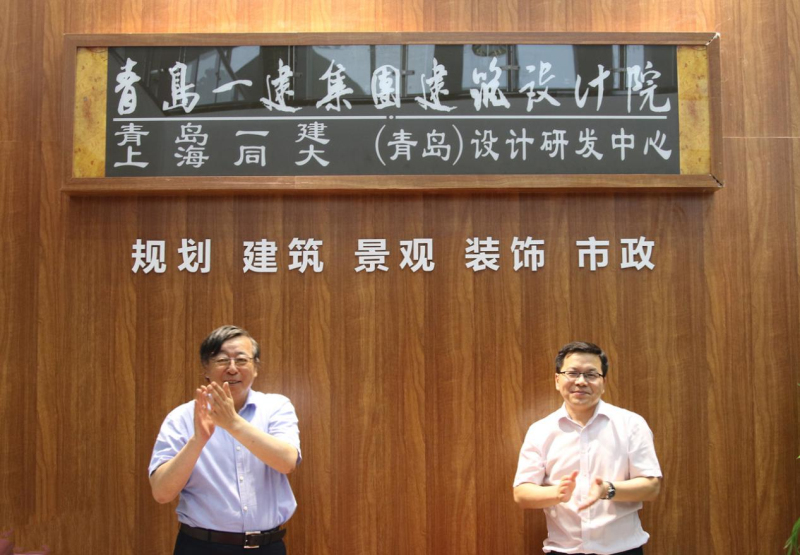 青島一建集團黨委書記、名譽董事長尚延青,青島一建集團董事長、總裁馬樹軍共同為建筑設計院揭牌
