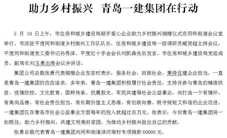 助力鄉(xiāng)村振興 青島一建集團(tuán)在行動(dòng)